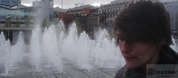 We mosey down to Piccadilly Gardens, I ask for a picture for the interview and she hurriedly poses in front of the fountain. Felt like the perfect image for both our moods for that day, a mood perfectly shaped like the overcast skies of that chilly afternoon in Manchester.
