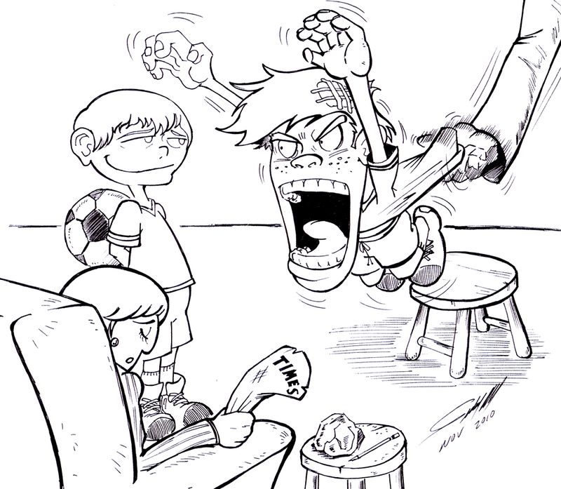 “This is an outrageous miscarriage of justice, he had a football under his arm, he threw it into the sun and I couldn’t see right, I didn’t know it was a rock, I thought it was the ball, Mum, Mum.” Judge/Mum Palmer just shook her head.