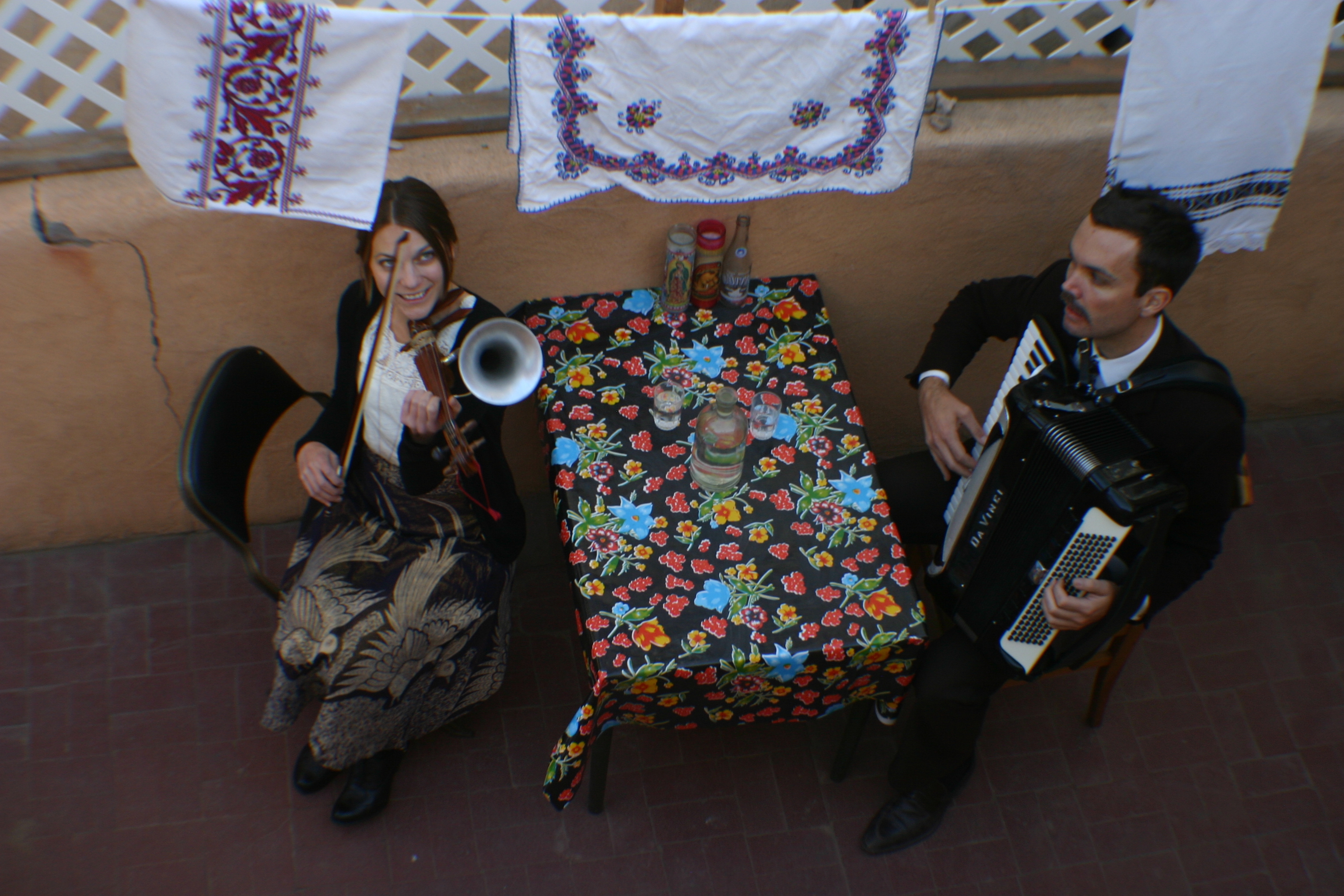 The band’s style is quintessentially Eastern-European, combined with elements of gypsy folk, klezmer and Middle Eastern traditional music. The instrumentation is delightfully varied, and emphasises both performers’ astounding musicianship – at several points during the show both are playing up to three instruments each simultaneously, with insane ease.