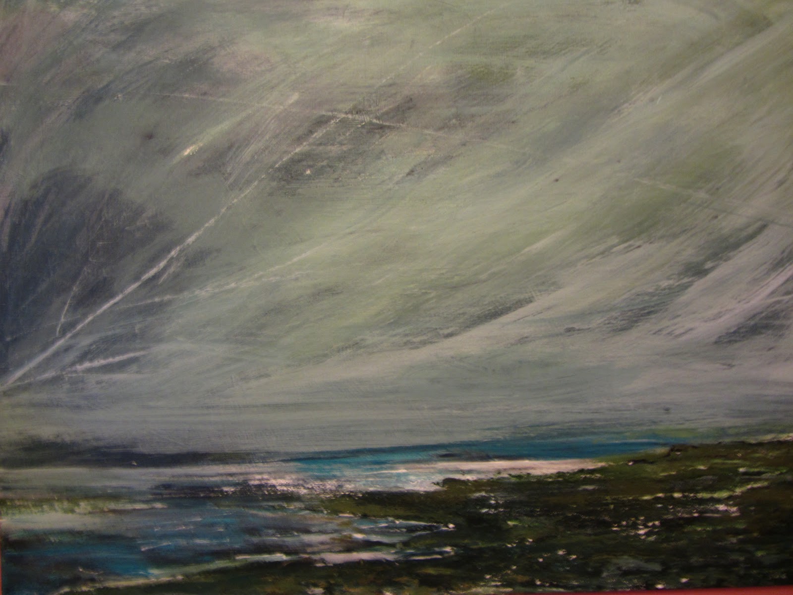 I try to explore the relationship between earth and sky, the energies of the land. ‘Low Horizons’ came about after a conversation with a friend who asked ‘Why are all your horizons low?’!