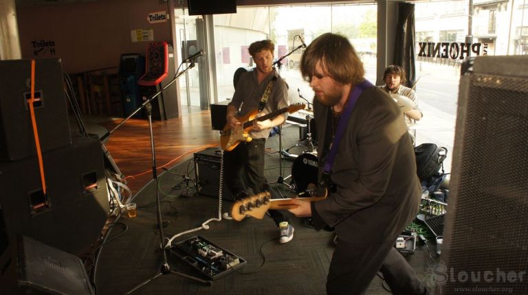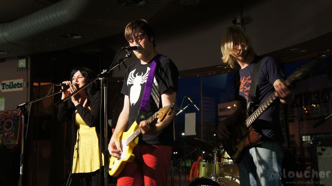 Maybe it was exhaustion. All those bands, all that running around, all that mediocre reviewing. Best possible choice was the Busker Bus. It’s always a fun experience and this time it didn’t disappoint. Just climbed in the first one and it was Blue Lip Feel playing (I mistimed and missed Firesuite‘s set). The band and fans took the top floor and the 6 song set felt more of a road trip between friends than any sort of formal show (loved the inflatable shark). The acoustic version of ‘Glitterbox’ was pretty good and a cover of The Rolling Stones was a nice change of pace.
