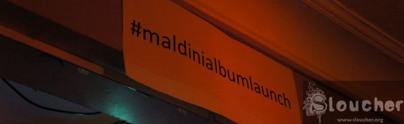 The stage was lovingly set for this event. A big white sign on the top had the hashtag #Maldinialbumlaunch, cardboard spaceships and stars, stolen from William Hartnell‘s secret stash, hung from the ceiling and a chunky rack stacked up to the max with signal processors and effects was observant, in the back, like an Eye Tyrant gazing upon its domain.