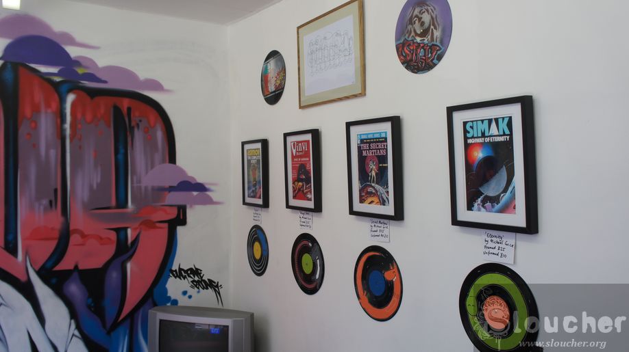 I notice on the outside two boxes, selling records for a quid. A couple entice my attention, one of them a “guilt purchase” of an album I downloaded, the other one an album I ruined via crayons, glue and glitter when I was 4. I pick up the latter and in true Sloucher tradition, I let it fall down to the ground. The record withstands Newton’s revenge, thankfully. I also grab a CD copy of Prodigy’s Fat of the Land, an album that I’ve lost two times (both times stolen by a woman – odd).