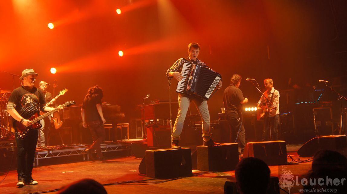 Everyone in the band gets their chance on the spotlight. Charlie Gillingham’s accordion gets the limelight treatment for a while and he even gets to pose on top of the PA, Dan Vickrey’s bluesy guitar riffs shine through and David Immerglück’s piercing guitar rumbles through the air like a gust of wind.