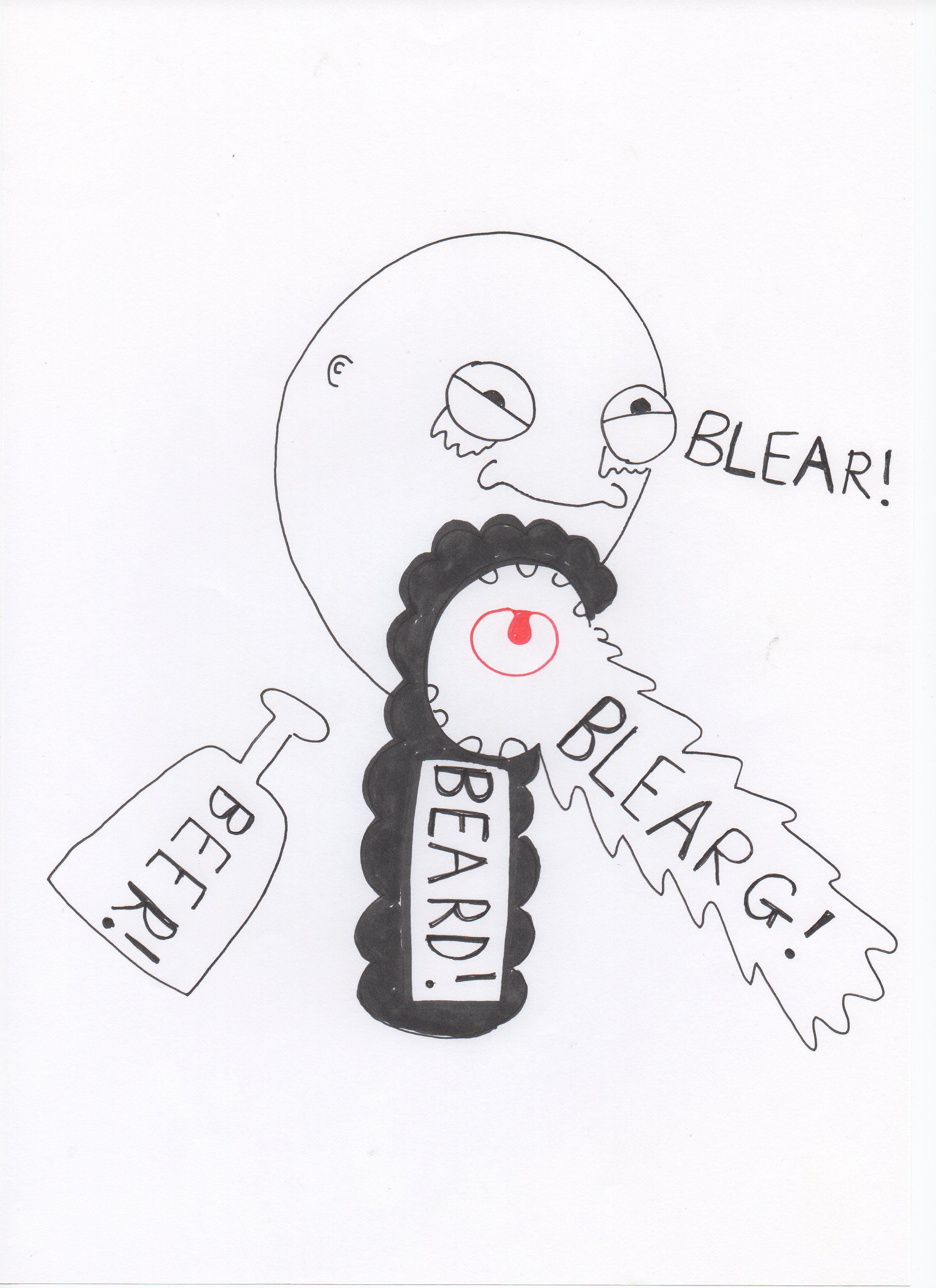 The Infinite Moustache – also known as the ‘goatee’, this semi-professional beard is achieved by dipping one’s lips first in a bowl of treacle, then in a bowl of barbershop floor-sweepings.
