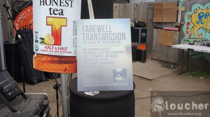 A very loud band is inside the bar and for a minute there, I think I’m in the wrong place. A waiter sees me confused and points to the back door. Lo and behold, there’s a backyard and there’s a stage too. The people from Rock The Cause have a little stand where they sell the double CD tribute to Jason Molina. It’s only ten bucks, it’s before it’s officially released and it includes a poster. I buy it. There’s no poster, never mind.