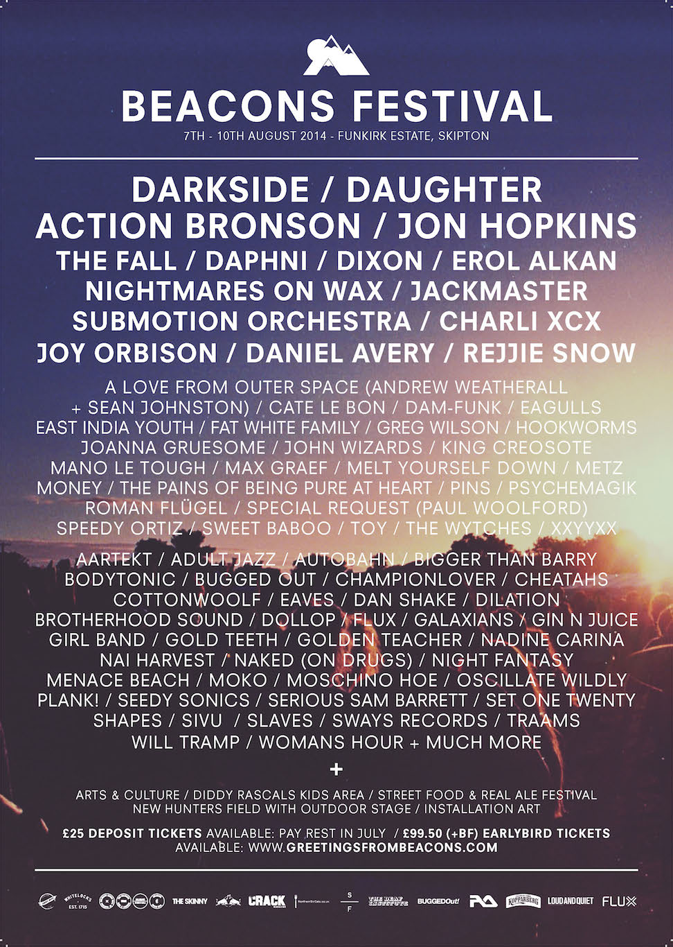 April 10, 2014April 10, 2014 Special guest ACTION BRONSON revealed for BEACONS FESTIVAL Well then…Beacons just exploded – RIGHT? New acts added to the bill: ACTION BRONSON / XXYYXX / DAM-FUNK / GREG WILSON With 4 months to go listen to the Beacons Festival 2014 Soundcloud Playlist to get you in the mood: Spread the gospel: Click to share on Bluesky (Opens in new window) Bluesky Post Click to share on Mastodon (Opens in new window) Mastodon Click to share on Threads (Opens in new window) Threads Click to share on WhatsApp (Opens in new window) WhatsApp Share on Tumblr Click to email a link to a friend (Opens in new window) Email Click to share on Reddit (Opens in new window) Reddit Pocket Click to print (Opens in new window) Print Click to share on Telegram (Opens in new window) Telegram Click to share on Nextdoor (Opens in new window) Nextdoor TweetLike Loading... Related