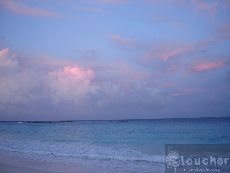 Eso y el cielo moradoso que me persigue en los lugares cercanos a la playa o donde el cielo es limpio, recordándome que Roberto tenía razón (y además se supone que viene, lo que me llena de alegría y esperanza y una sensación entre previsora y advertidora de que uno debe tener cuidado con lo que desea porque se le puede cumplir).
