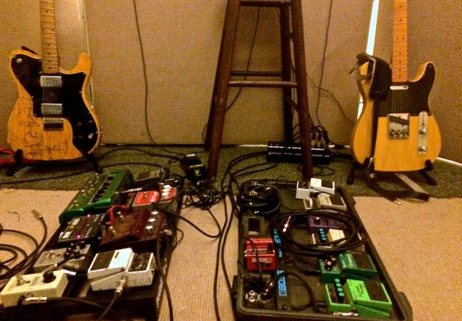 It was also a good transition for Joe to get off the 12 string and play bass. After some debate (with himself) about playing the bass line with fingers or pick, Joe decided to go with the pick. He nailed the bassline in 3 takes. I had an easy job with the rhythm guitar parts of the song, so I managed to do my takes fast. John began to set up for his leads, I went outside to see daylight and have some time with a bunch of cigarettes. When I came back into the room, I could hear that John was on the bridge lead part of the song. Allen and Joe were in the room with him. I recognized the part he was playing but it sounded like it was being played through a royally screwed up Wah pedal. I knew that Allen didn’t have one or either of the guys. So I went into investigate what was producing this sound. Allen was hunched over changing the dials on his Line 6 Delay pedal. It was creating this amazing washed out delay, almost phase type effect. This is what about I like about the studio, letting other people do their thing, and running with their own inspiration. I would have never thought to create a texture like that for the part. But once I heard what they had put together, I couldn’t imagine it any other way.